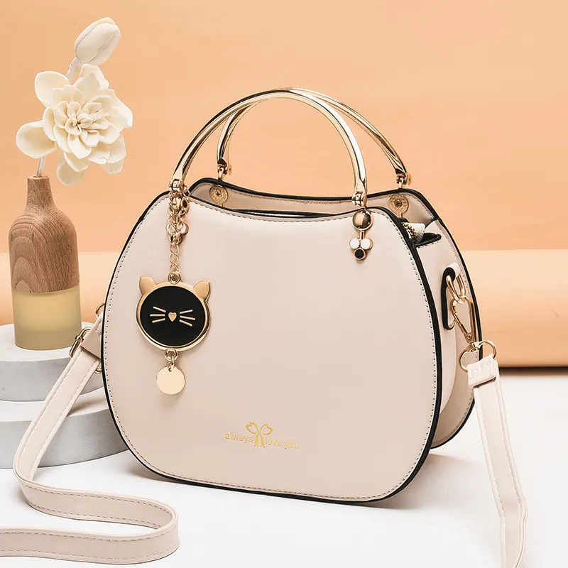 Tags: cat pendant single shoulder handbag-Beige, handbags, womens bags,